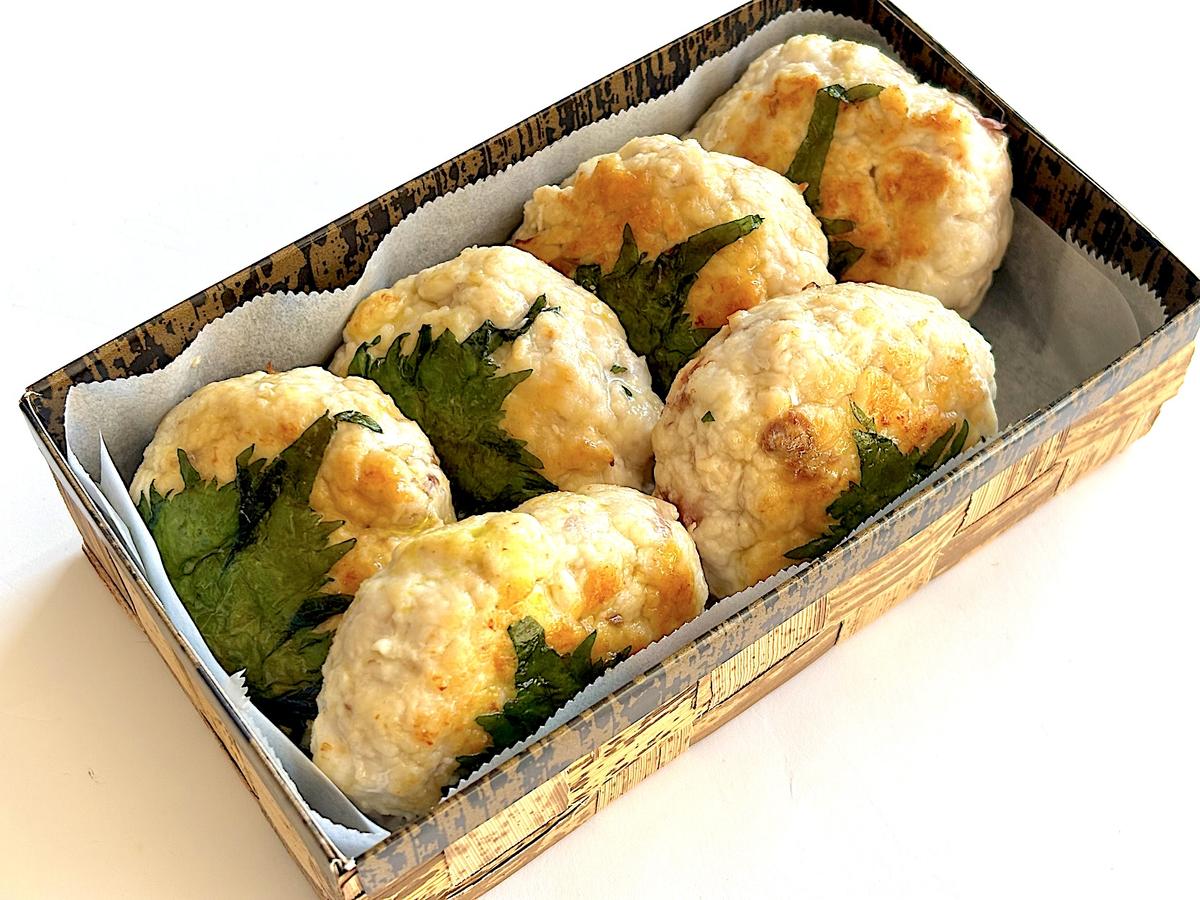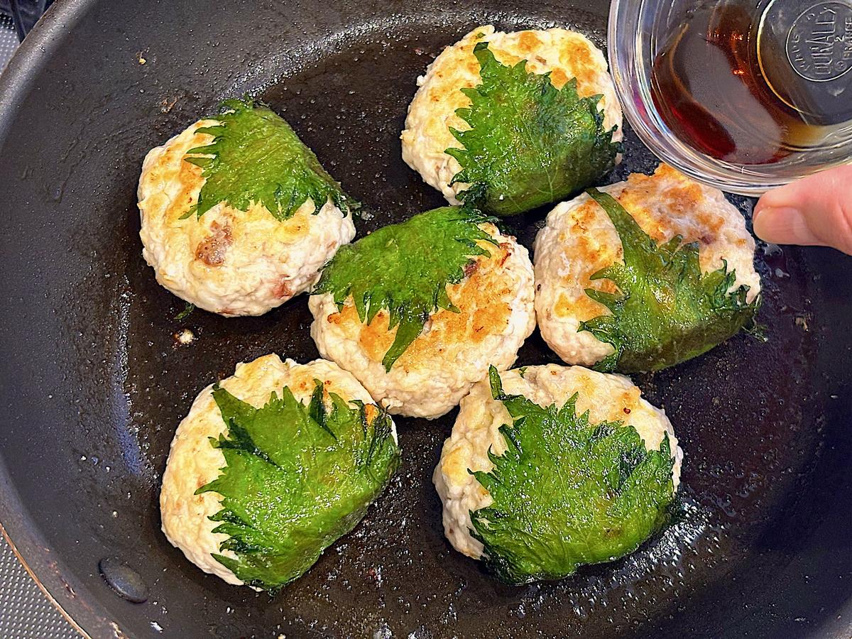 大葉をくるっと巻いて焼いたら、桜餅のようなかわいい見た目で、香りもよいふんわりバーグができました。