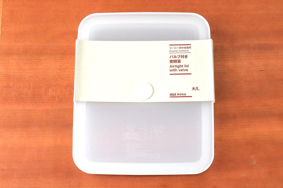 フタは別売りで、「ホーロー保存容器用 バルブ付き密閉蓋 大」と「ホーロー保存容器用 シール蓋 大」の2種類。私は「密閉バルブ付き」のものを購入しました。