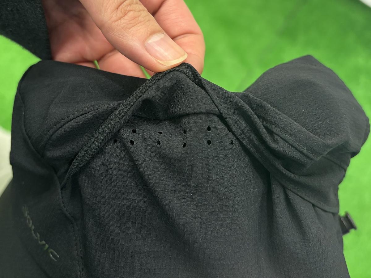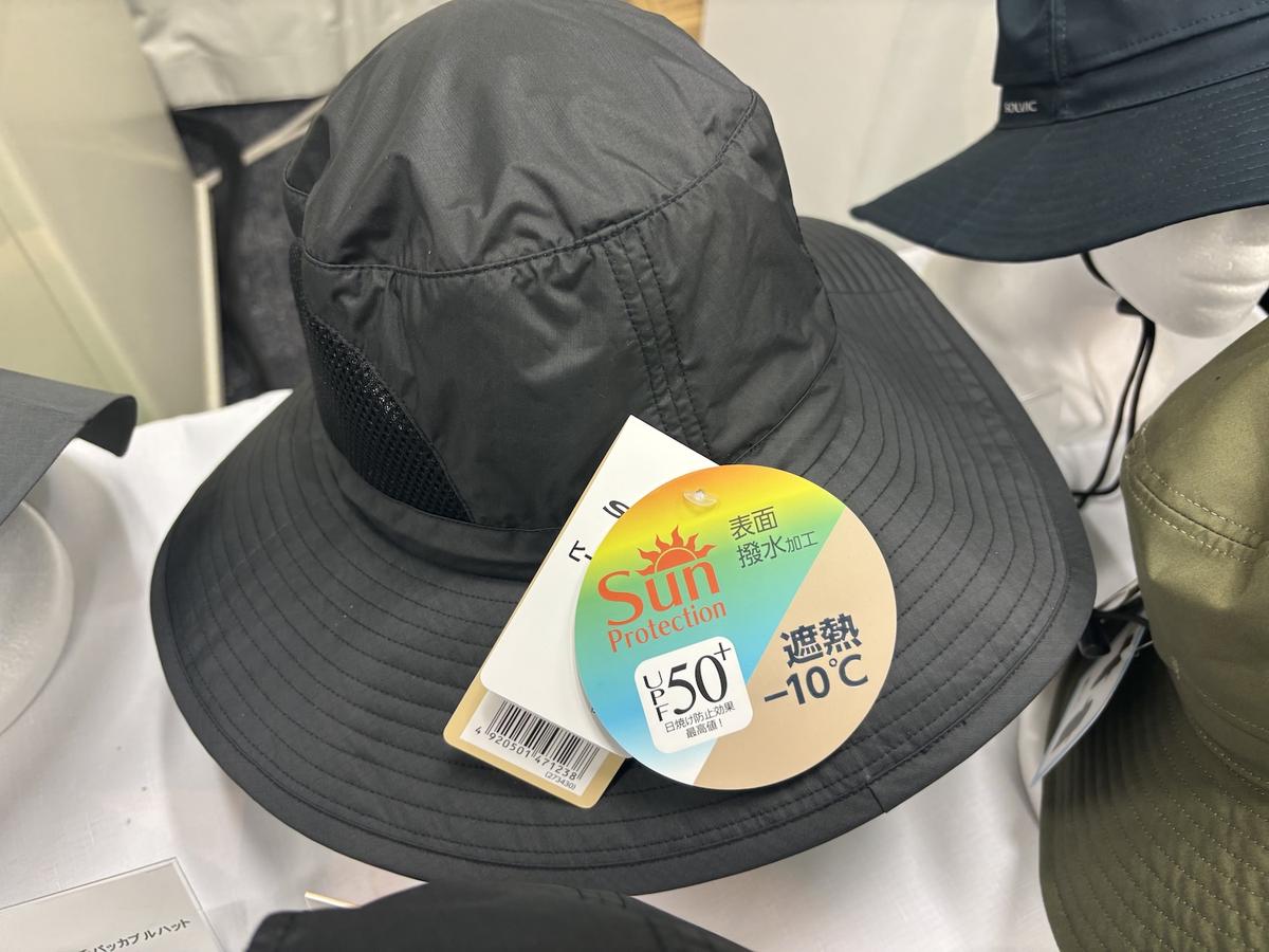 また「SVヒートプロテクションハット(1,980円 ※税込)」も優秀でした。遮熱効果「-10℃」という頼もしさに加え、各所に設けられたベンチレーションがムレを逃がしてくれます。首まわりを守るフェイスカバーが収納可能なので、シーンに合わせてスタイルを変えられるのも高ポイント。