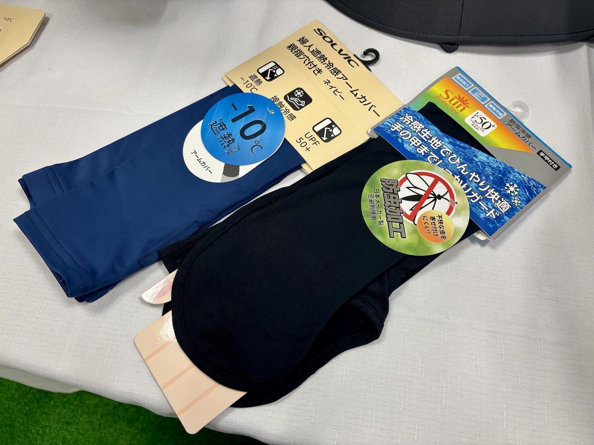 「SV婦人遮熱冷感アームカバー 親指穴付き(798円 ※税込)」は、UPF50+で紫外線対策は申し分なし。接触冷感&遮熱効果で、自転車に乗るときや買い物に行くときに重宝しそうです。「防虫冷感アームカバー 手甲付き(598円 ※税込)」は、防虫加工が施されているので庭仕事やアウトドアシーンに役立つはず。