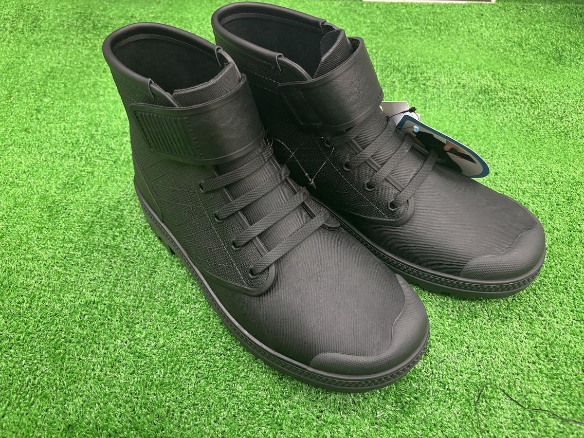 こちらは、ゲリラ豪雨対策に一足持っておきたいスニーカー感覚の「防水ブーツ(1,980円 ※税込)」。ゴム紐とマジックテープで脱ぎ履きも楽チンです。