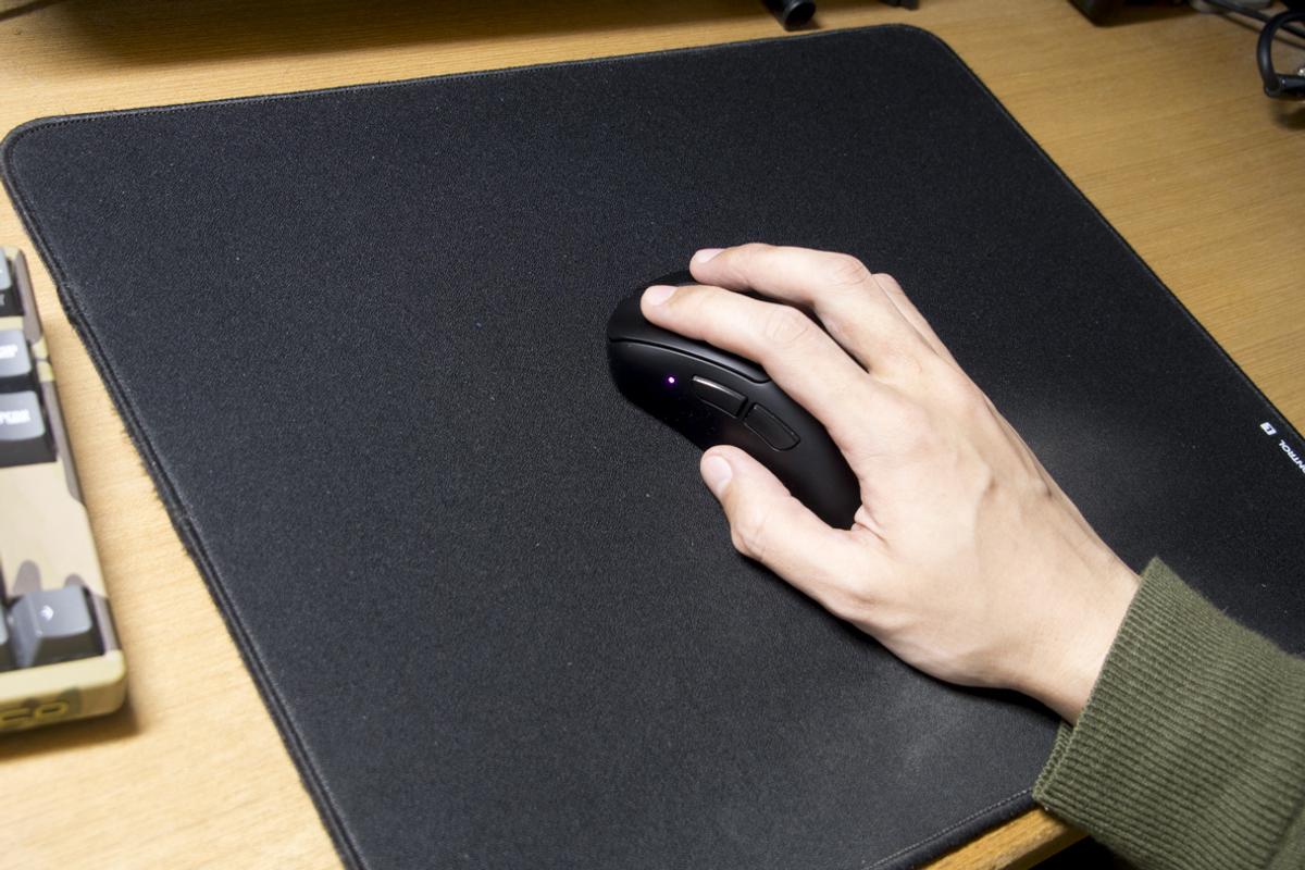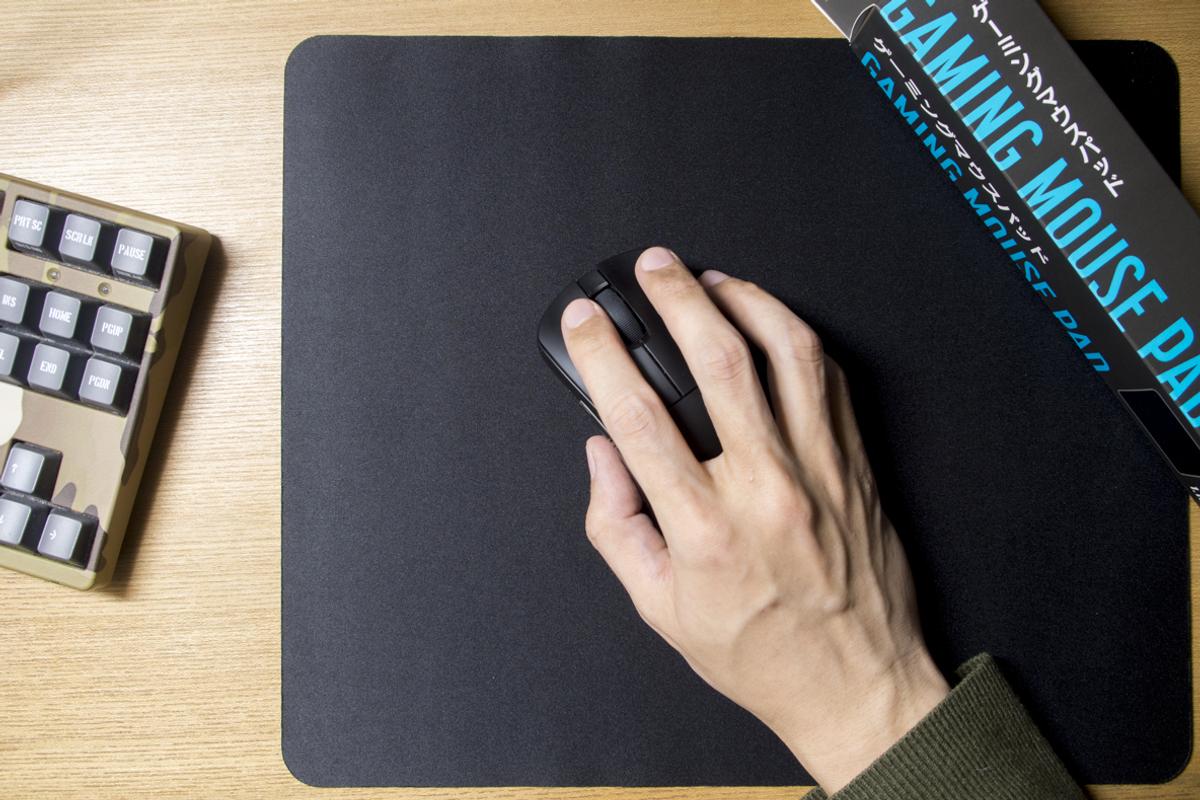 あれっ……。いい! ゲーミングマウスパッドらしく、適度に摩擦があってちゃんとマウスが止まる。