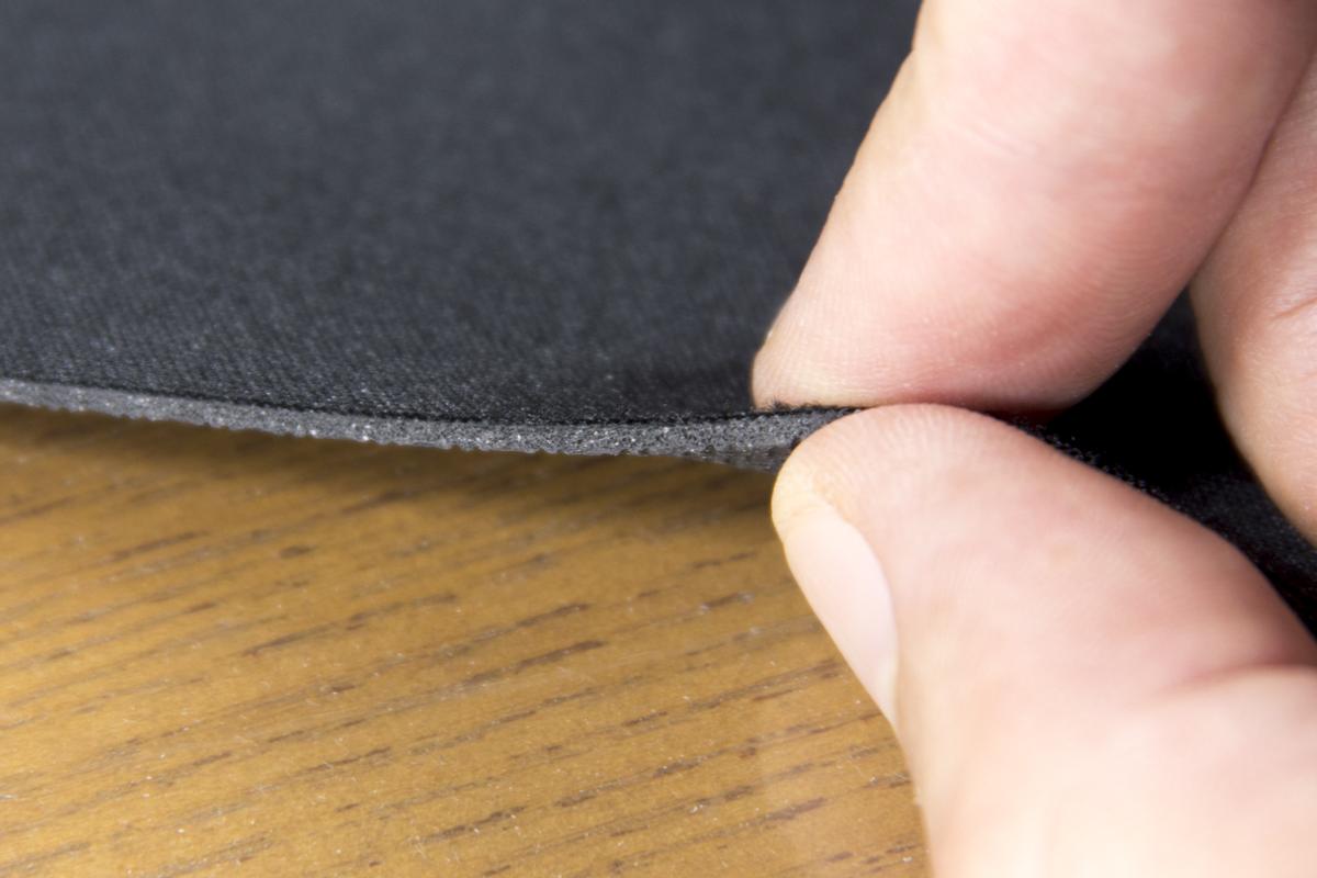 厚みは約1.5mmで、同サイズのメーカー品定番ゲーミングマウスパッドと近い厚さがあります。