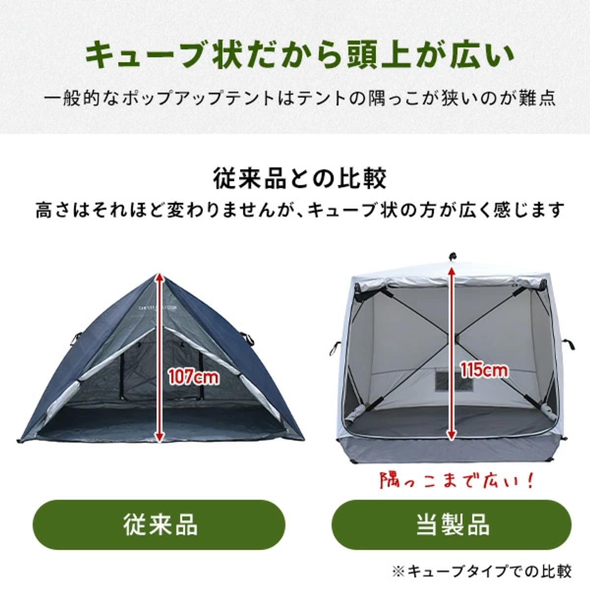 加えて、キューブ状の設計により頭上空間が広く、圧迫感が少ないのも嬉しいポイント。四隅も広く使えるので、大人でもゆったり過ごせる快適なスペースが確保できます。