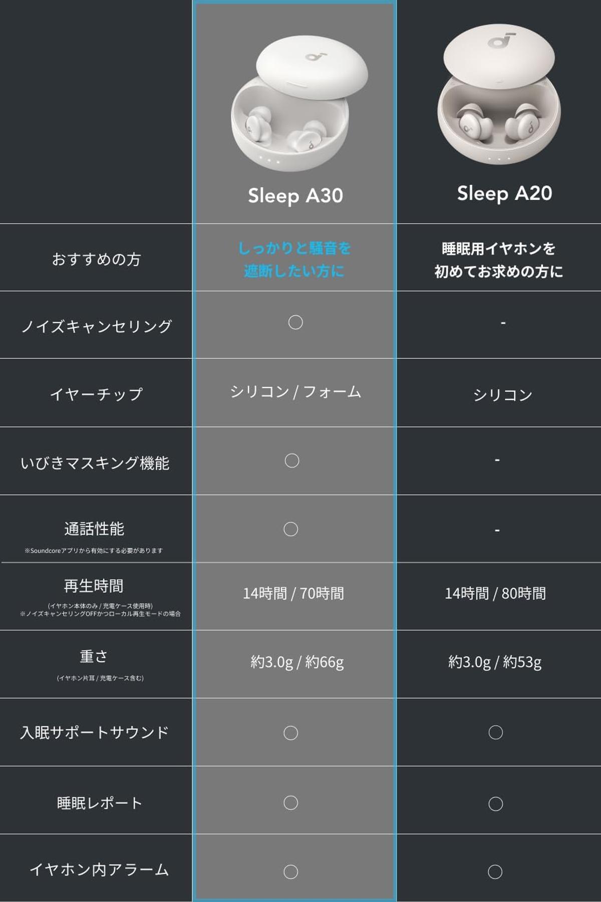 「Sleep A30」は、前モデル「Sleep A20」のグレードアップ版です。