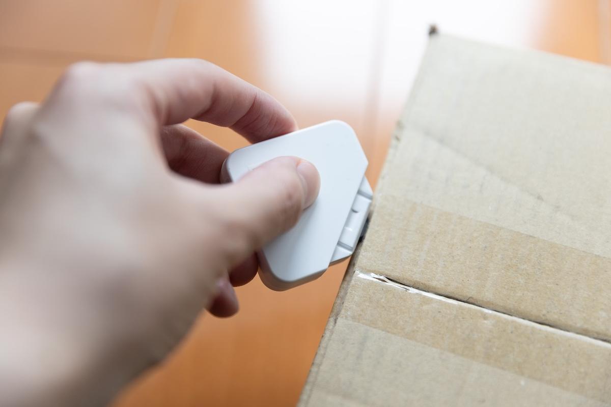 ダンボールに貼られたテープ、ハサミや普通のカッターでは地味に切りづらいな〜と思っていたのですが、この「ダンボールカッター」ならスッと刃が入るのでストレスフリー!