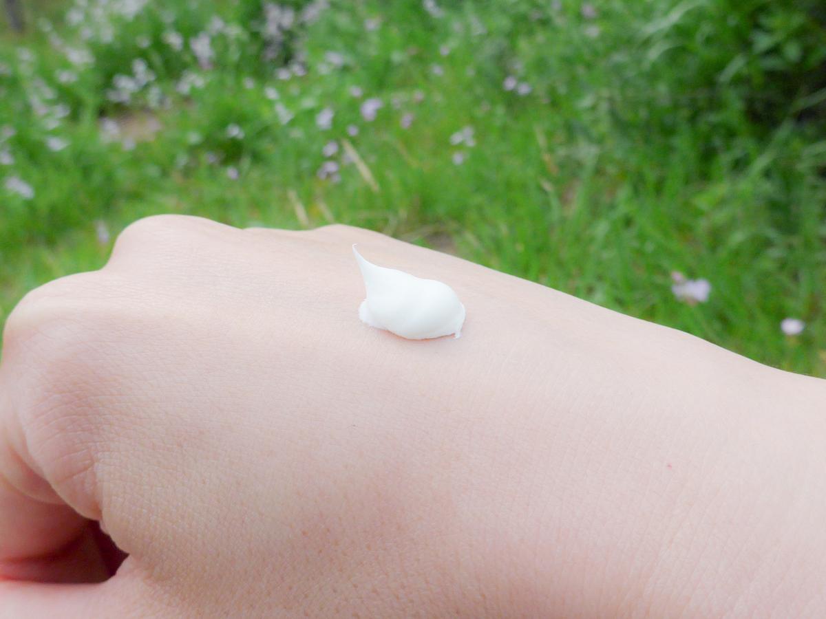 手の甲に出してみると、とろっとした白いテクスチャー。