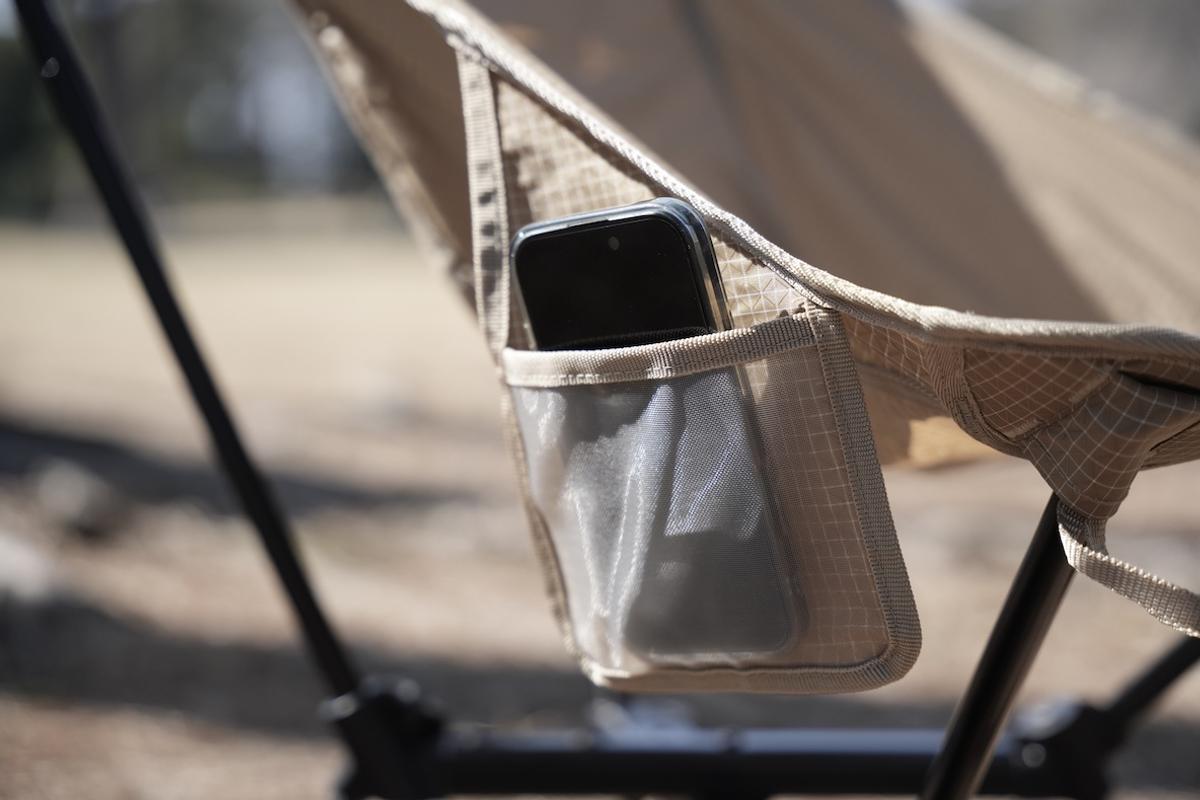 座面脇には、スマホや小物をサッと入れておけるサイドポケットが備わっています。