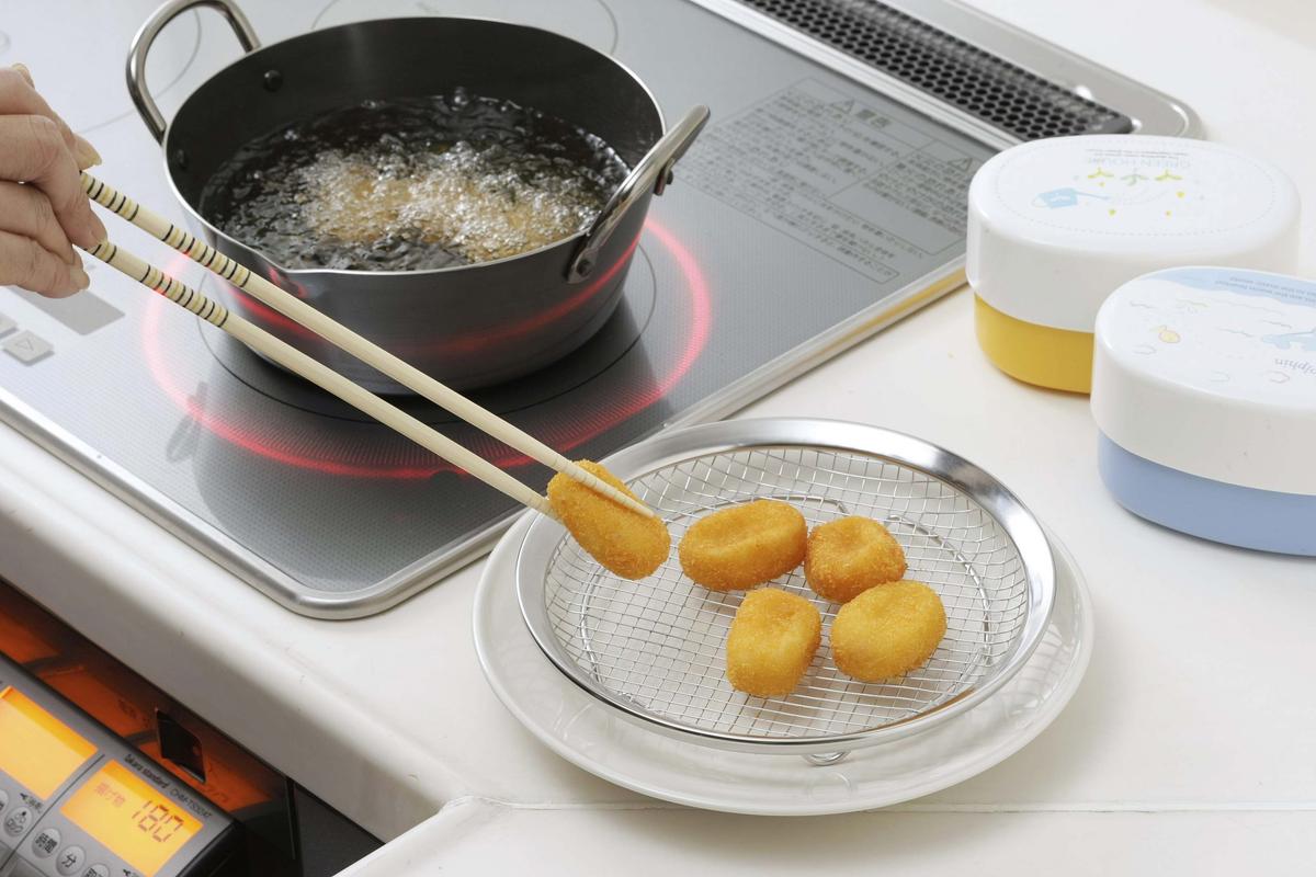 いつもの菜箸で、1つずつ油から揚げていると、最後には少し揚げすぎてしまう……。特に揚げ物は油はねも怖いし、慎重になって時間がかかります。