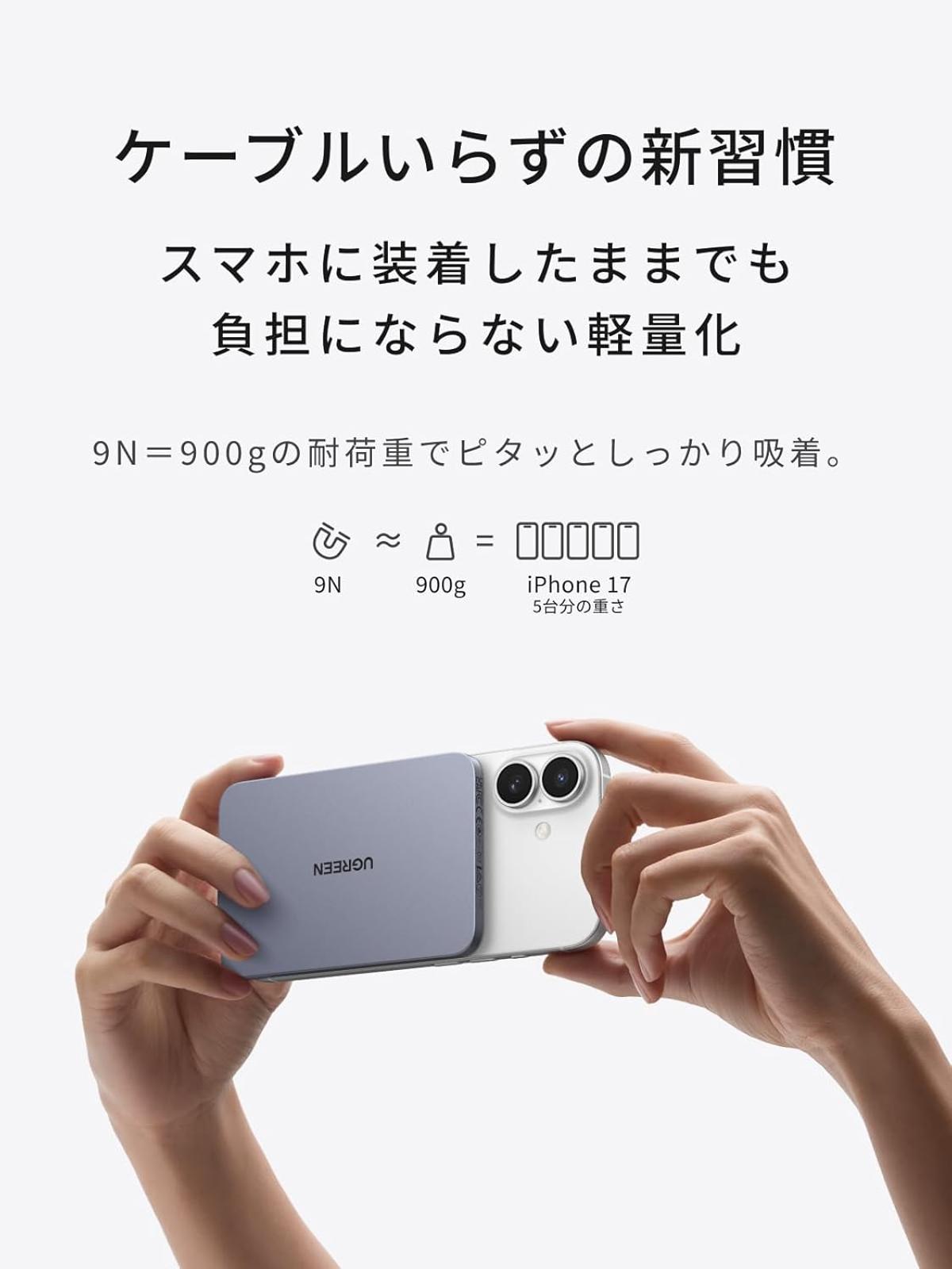 現在、◯や◯など、UGREEN(ユーグリーン)の新作モバイルバッテリー「MagFlow Air 5000mAh PB580」がお得に登場しています。