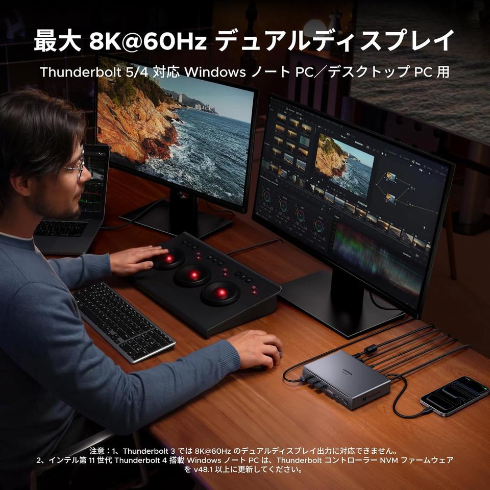 次世代規格Thunderbolt 5に対応した、UGREENの最新ドッキングステーションが34%オフの最安値で販売中!