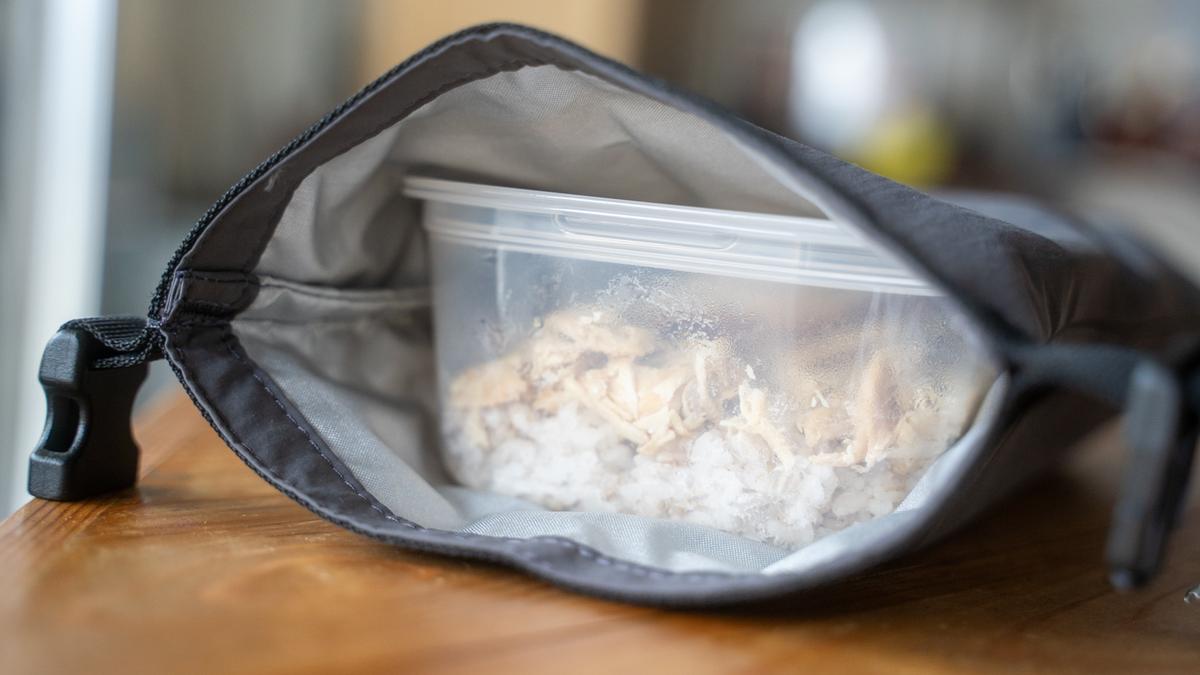 このフードコンテナは幅15cmほどで、厚みがあるぶんランチバッグの小サイズにちょうどよく収まります。