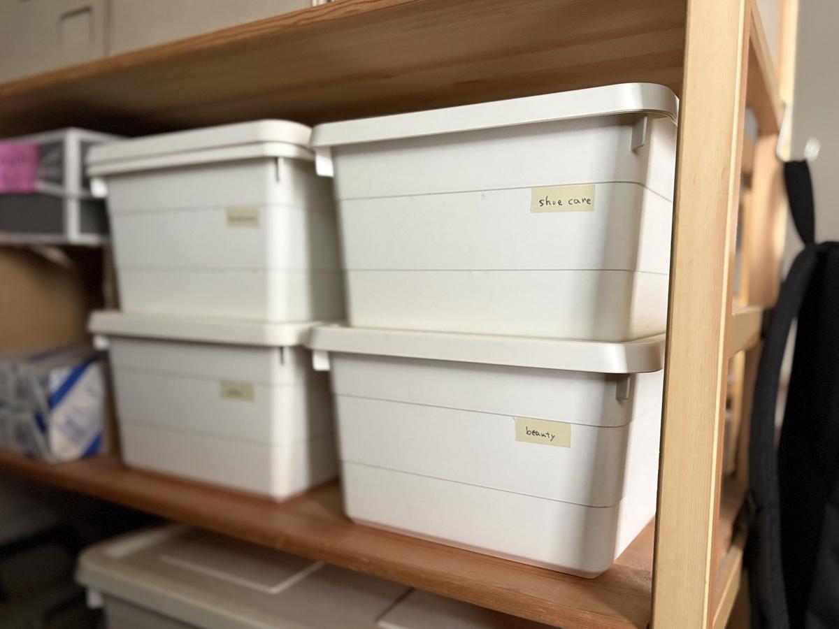 つい他にもラベルを付けたくなり、中身が見えずに不便だった玄関の収納ボックスにも。
