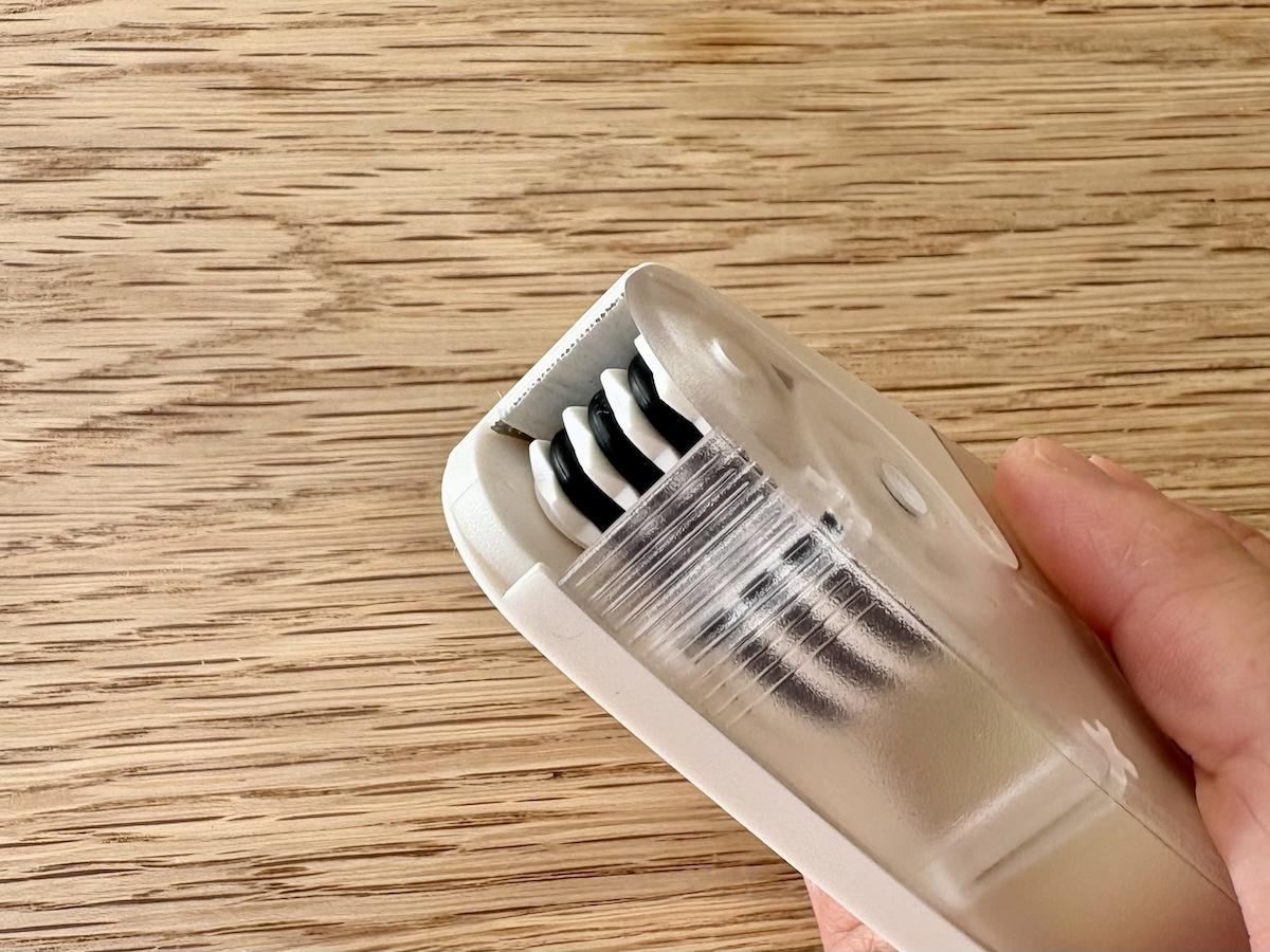 本体上のスライダーを1回引くたびに、約2cm出てきます。