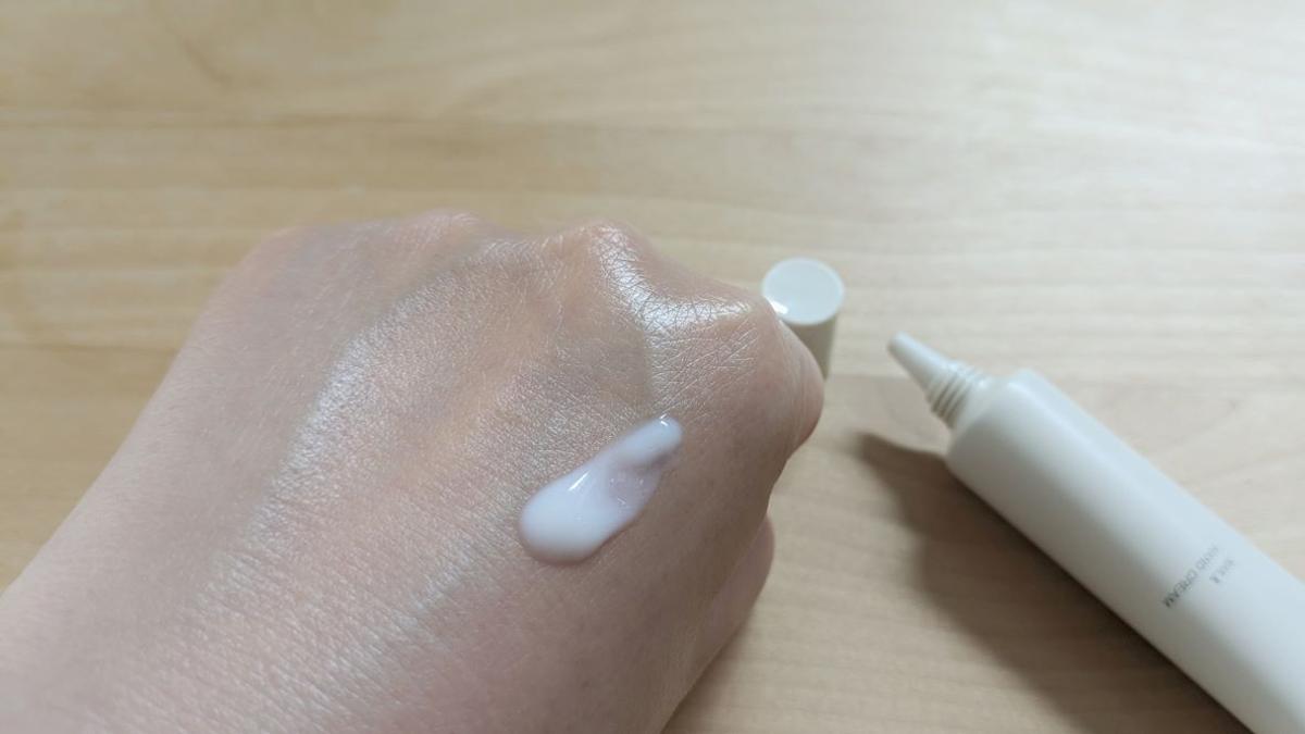 実際に手に塗ってみると、水分が多めのサラッとした使い心地でよく伸びます。しっとり感は強めに感じました。