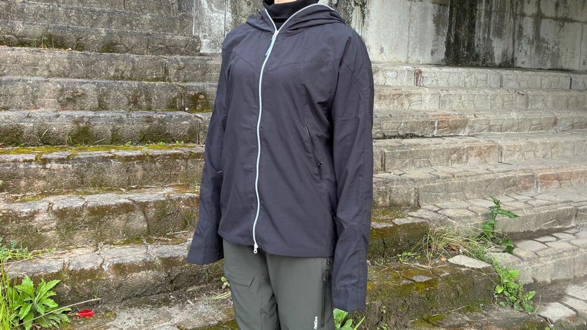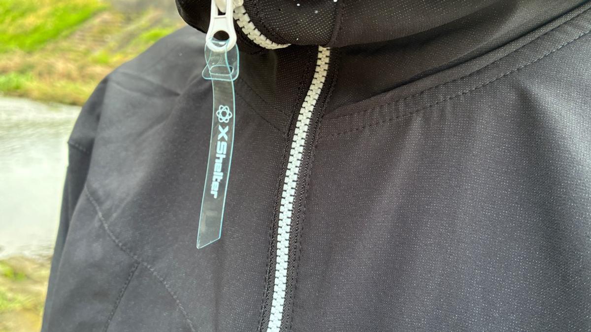 また、頭上まで閉じられるフードはドットメッシュ素材で、視界を確保しつつ完全防備も可能。