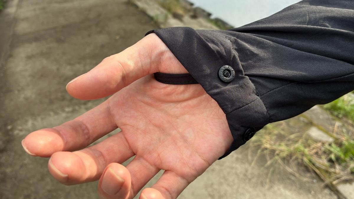 袖口には親指を通すループ付きで手の甲まで覆えます。