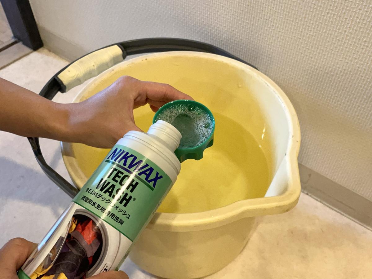 この洗剤を使うときは、必ずウェアの洗濯表示を確認しましょう! 今回はバケツで手洗いしましたが、洗濯機OKの表示があれば使用可能とのこと。