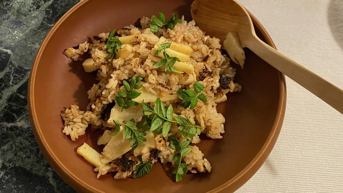 4弾目の0.5合だけ炊いた筍ごはんはおこげができちゃったけど、美味しい。