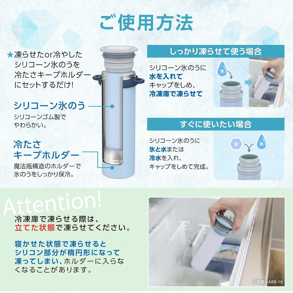 凍らせるだけでなく、氷+水を入れてすぐに使える点も見逃せませんよ。