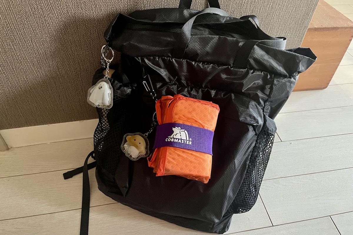 折りたたむと手のひらサイズ。厚みはしっかりありますが、バックパックのサイドポケットはもちろん、サコッシュにさえすっぽりと収まります。