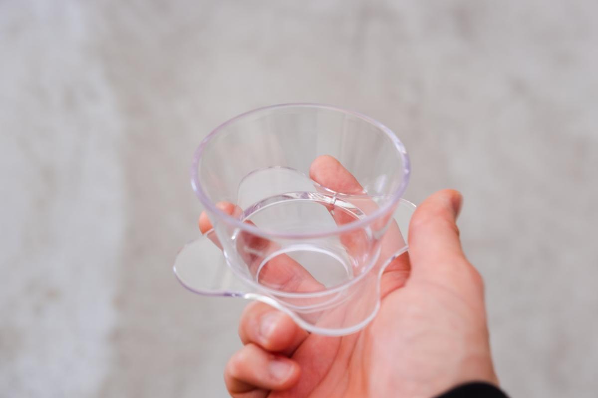 見た目はガラスのような透明感がありますが、素材はトライタン樹脂製。