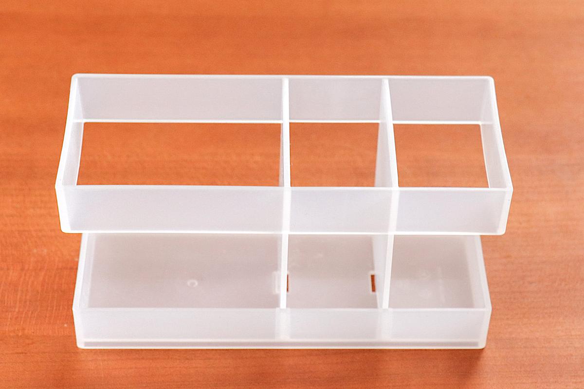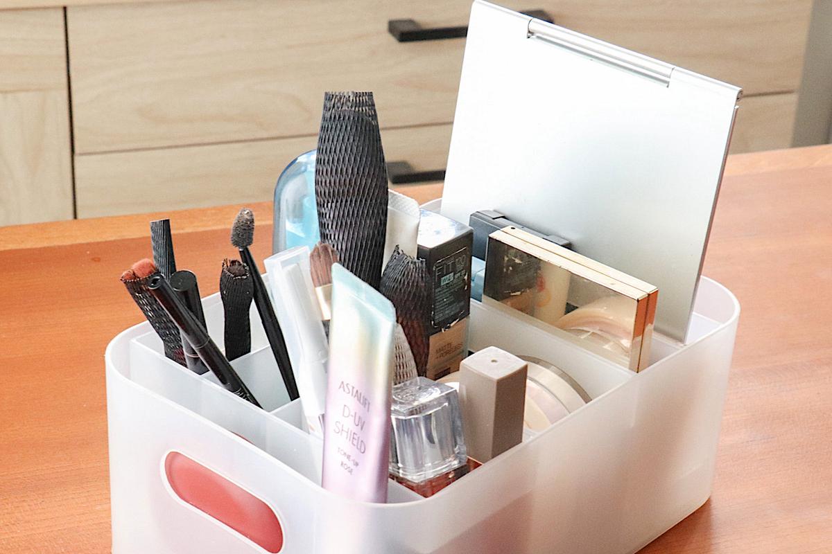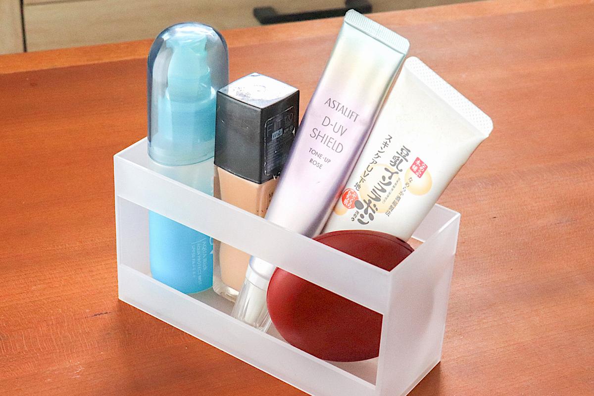 注意したいのは、コスメであれば単色アイシャドウ、文房具であればふせんやクリップのような小さなアイテムの収納には向いていないこと。