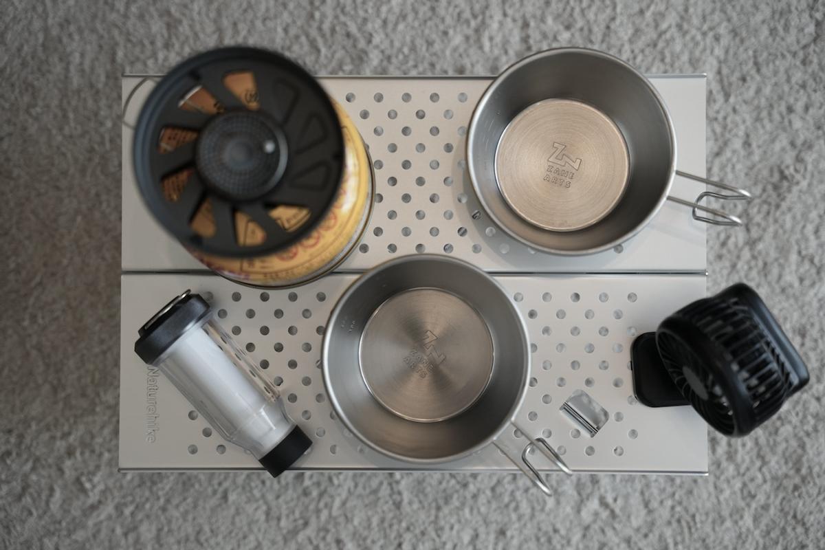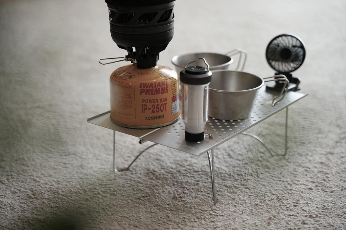 天板がアルミ製なので、火から下ろしたばかりのケトルやクッカーを直接置いても全く問題ないのがうれしいところ。