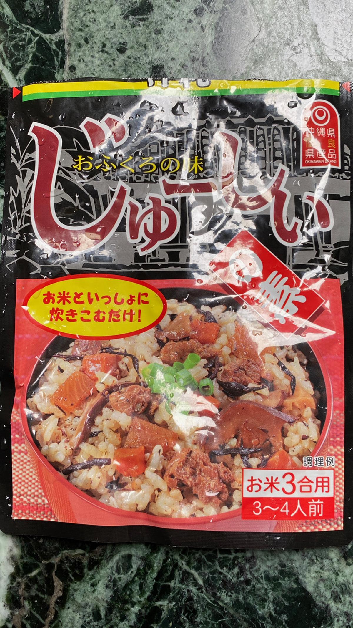 炊き込みご飯の素である。「これだ!」米を研いで炊きました。具が入っているので、炊けばそのまま食べられる。私、沖縄に行ったのは何年前だったかなあ……と懐かしくなる。
