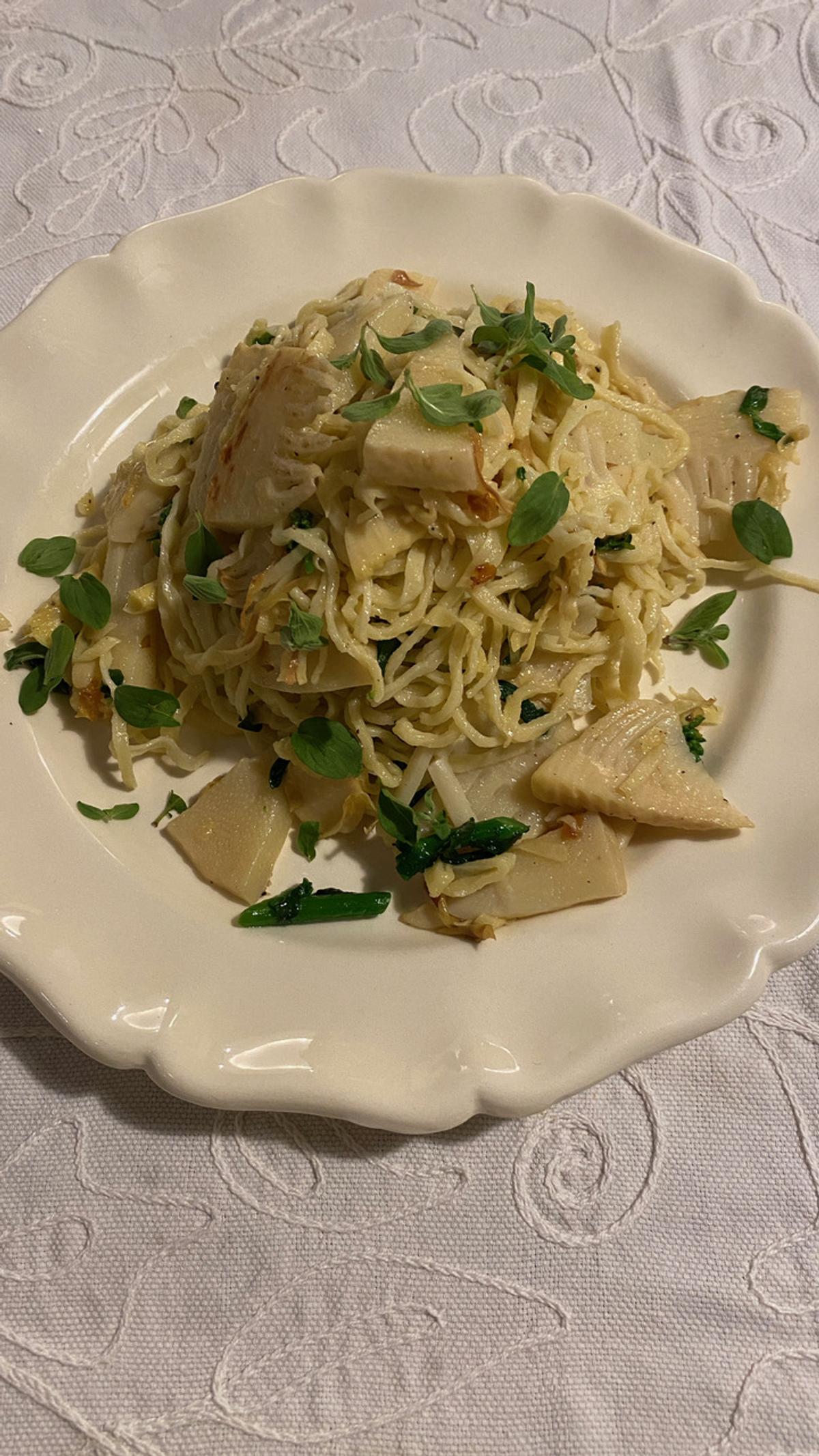 もうひとつは「筍のアーリオ・オーリオのパスタ」Regaloレシピ。これまた旨し。