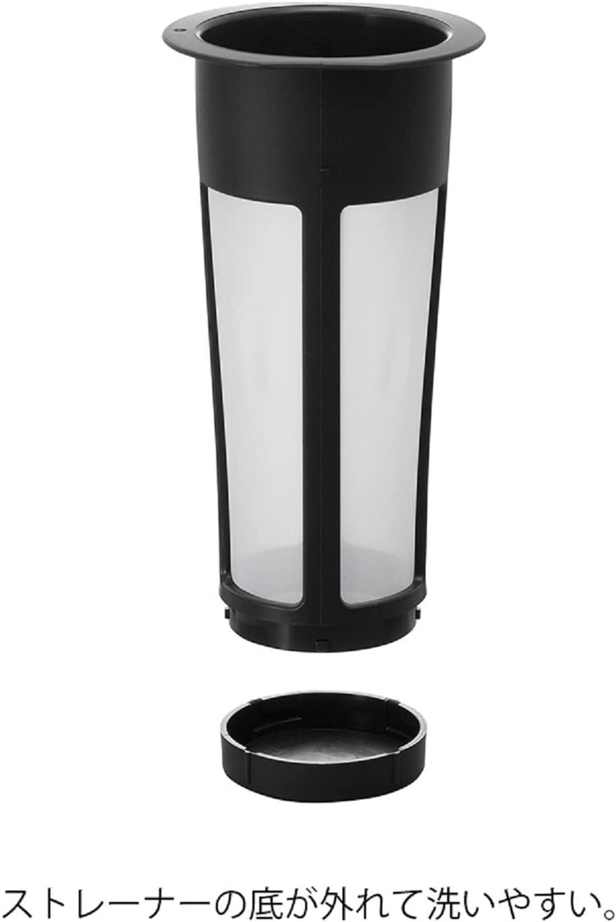 本製品は、シンプルな工程で本格的なアイスコーヒーが作れるのが魅力です。コーヒー粉をストレーナーに入れ、水を注いで冷蔵庫に置くだけ。約8時間でじっくり抽出された水出しコーヒーが完成します。