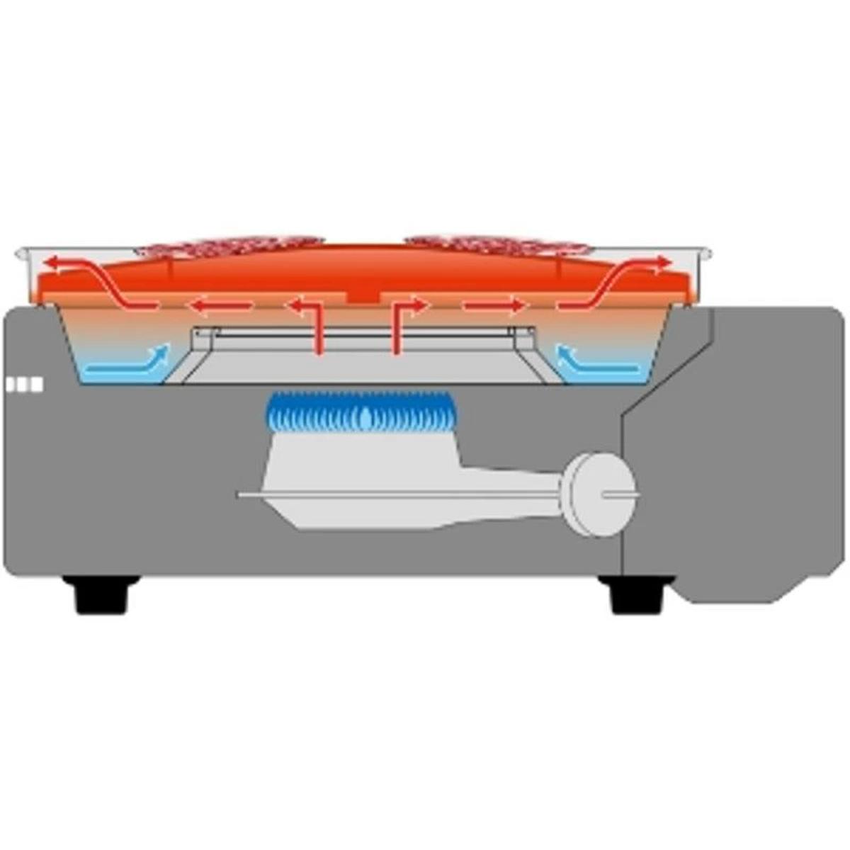 バーナーと焼き面の間に適度に熱がこもる構造にして焼き面を約210~250℃にコントロール