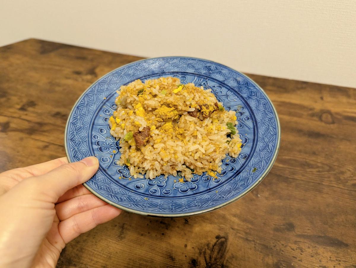 カレーの次にオススメなのは、チャーハン! 小さじ1杯くらいで、想像以上にお店っぽい味になりました。濃いめの味付けの冷凍チャーハンでも、しっかり薬膳。