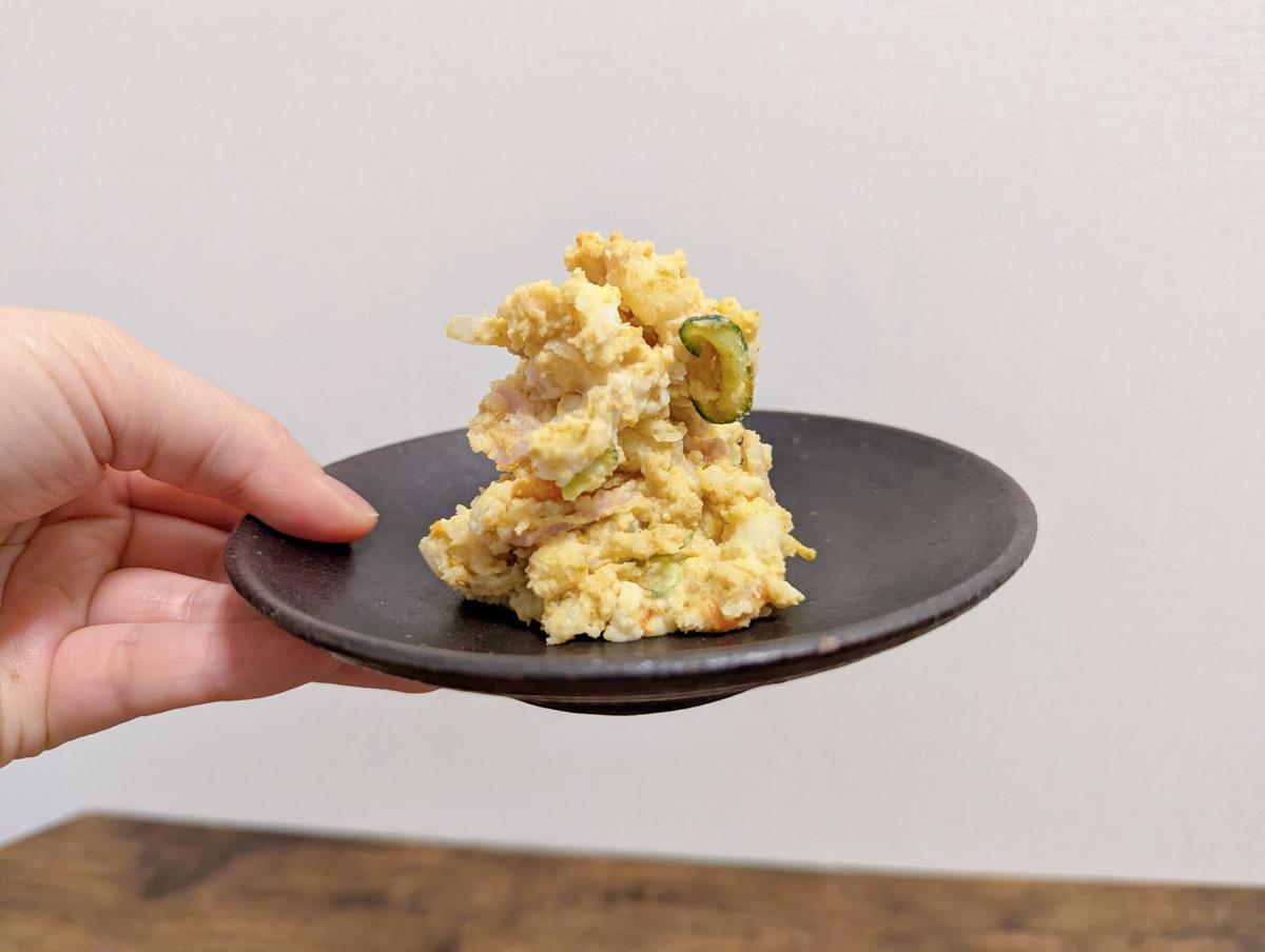お惣菜のポテトサラダに小さじ1杯くらいかけてみたのですが、マヨネーズの味が結構強い。思い切って全体的に混ぜてみたら大正解でした……! 特に、そのまま入っているクミンのカリカリ食感が◎。味変の感覚が際立ちます。