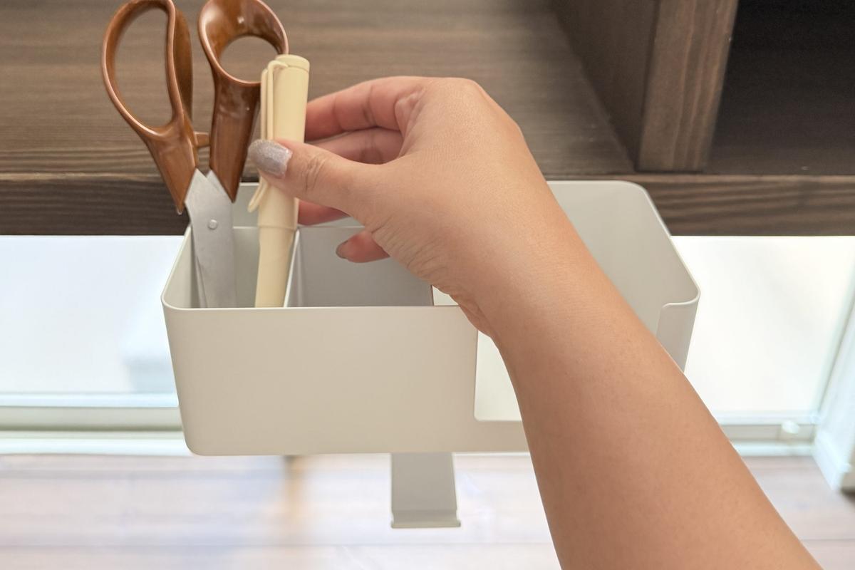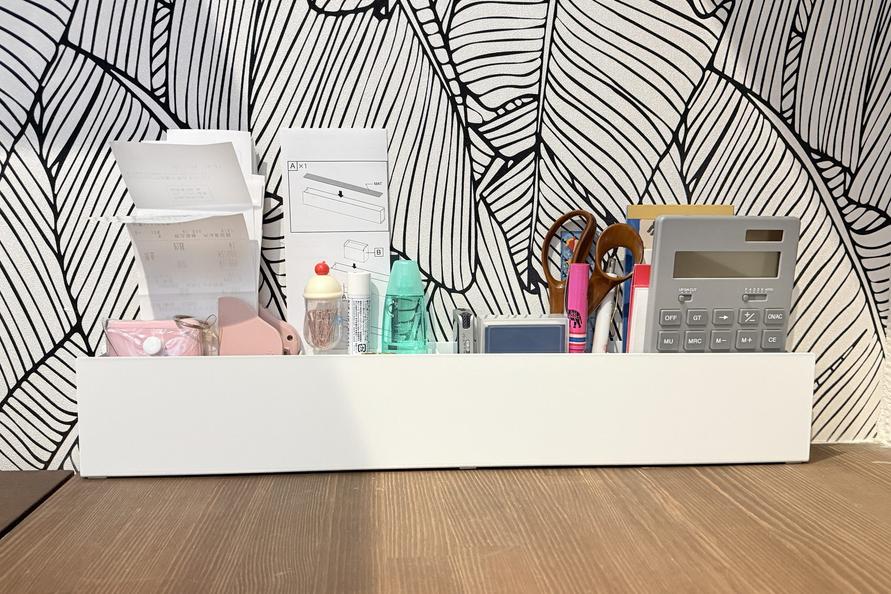 これらのアイテムは今までデスクになんとなく直置きしていましたが、ここにまとめるだけで見た目が整い、デスクまわりがぐっとスッキリしました。