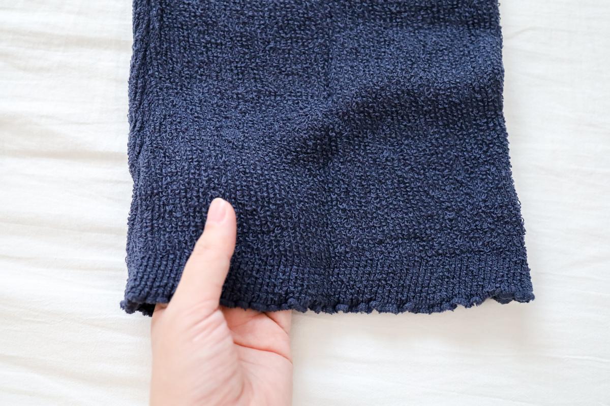 タオル生地なので、むしろさらりと吸い取ってくれる感じが心地いいんですよね。