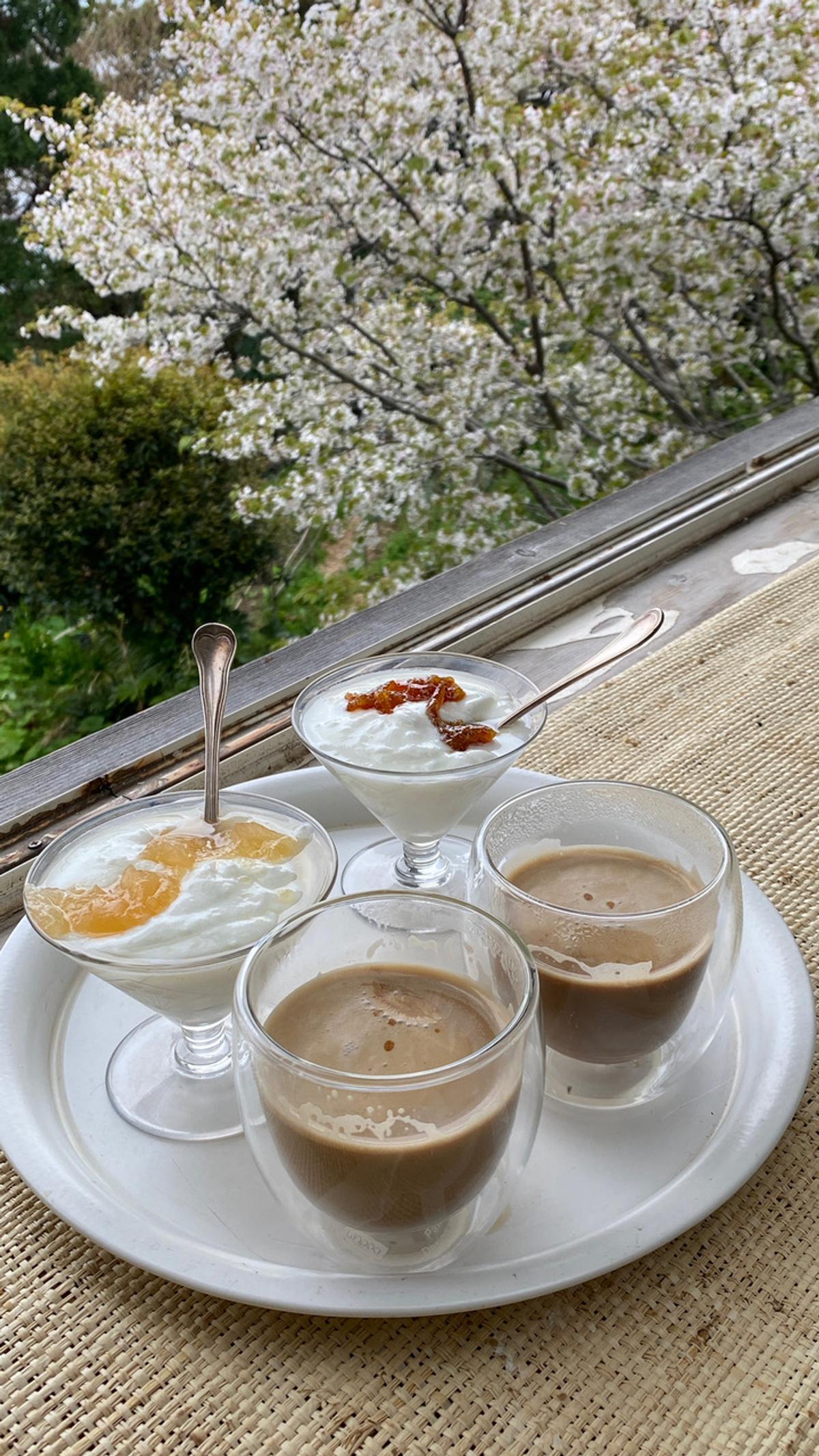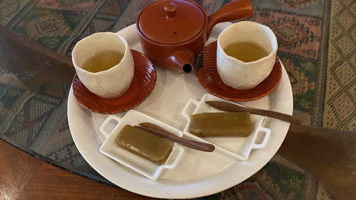 なっちゃん(島崎夏美)が置いていってくれた杵つき玄米餅を焼いてみた(初めて体験した玄米餅でした。美味しいものだね。ありがとう)、こんにゃくの甘辛煮、青のりの味噌汁、