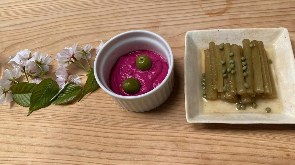 ビーツとひよこ豆のフムス、フキの煮物、