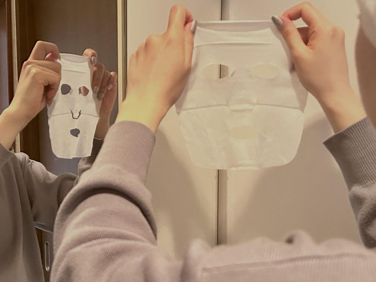通常のパック同様、顔に密着させて1分ほど放置します。