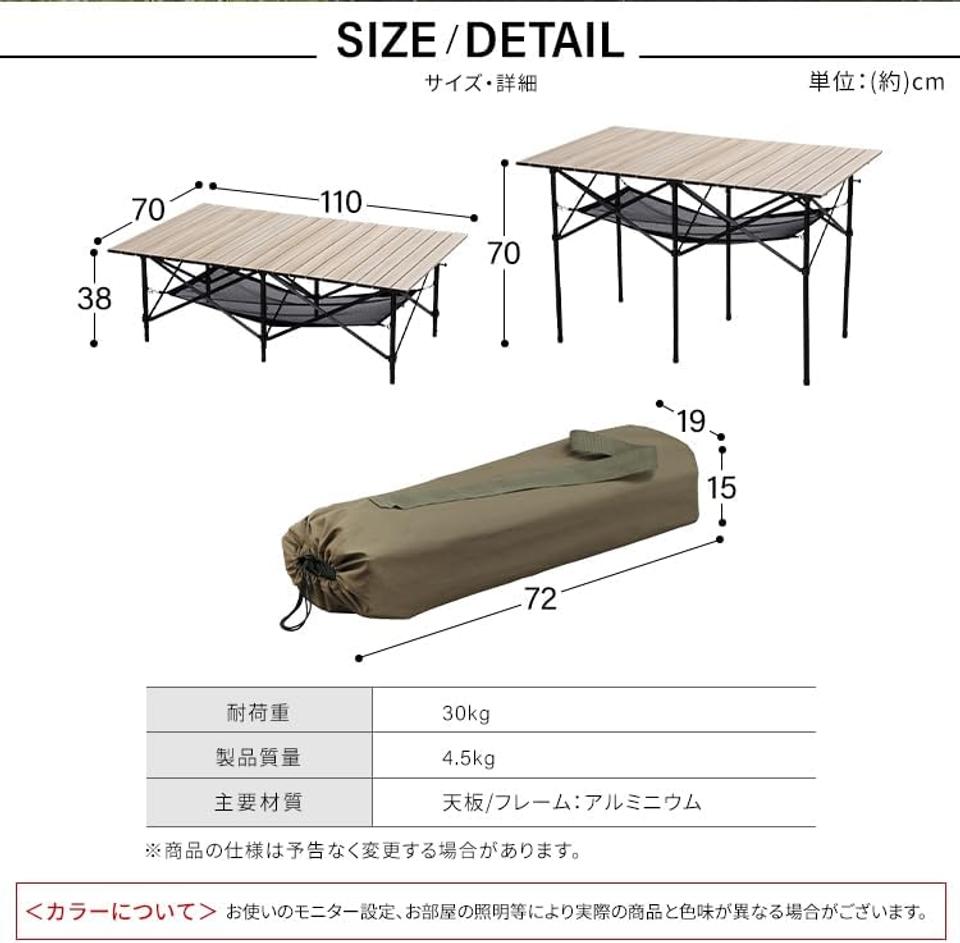 幅110×奥行70cmと4人でも余裕のサイズ感なのに、折りたたみ式でコンパクト収納できるのも嬉しいポイント。
