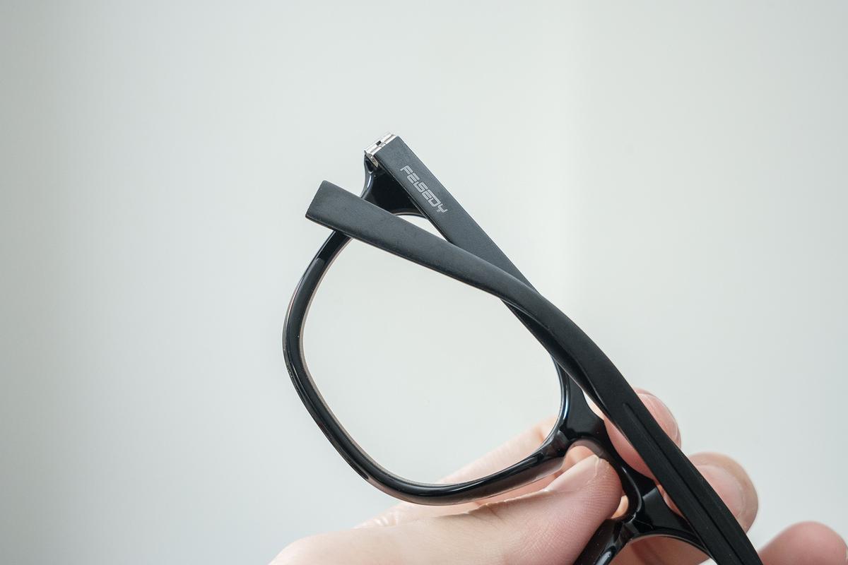 デザインはクセの少ないウェリントン型で、日本人の顔に自然となじみやすい形。