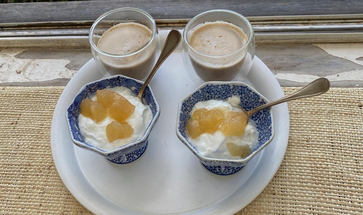 café au lait、ヨーグルト、プロテイン。いいお天気。