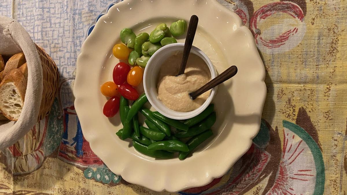 一昨日ビーツを買った。先日作ったオペラピンク色のフムスをまた作ろうと思ったのに、ビーツの中身が白かった。なんだかとても残念だったけれど、ひよこ豆と胡麻ペーストとオリーブオイルとレモン汁で作りましたよ、フムス。フムスを囲むのはそら豆+ミニトマト+スナップエンドウ。パンチはなかったけど、お味はOK。