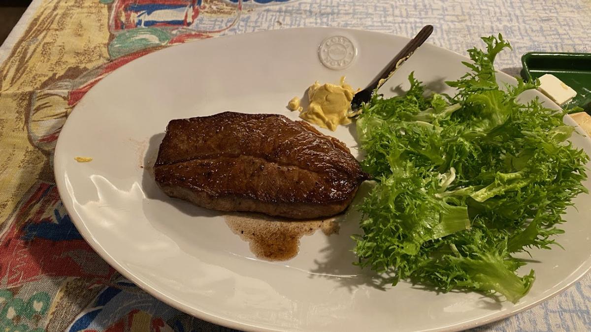 もちろん美味しくできました。50%引きで買ってきた牛肉ミスジ。すごく美味。年寄りの歯にも優しい。フリゼレタスとともに。