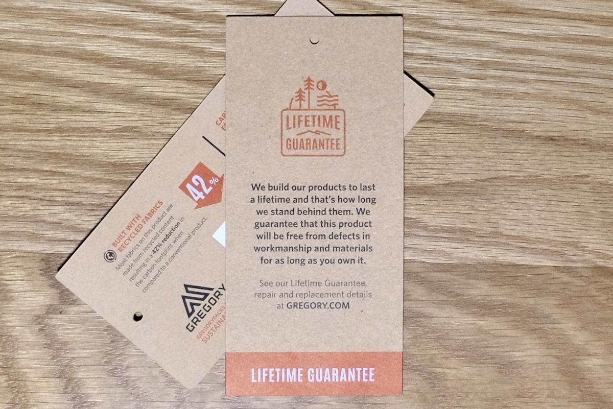 ”すべてのGregory製品は、生涯を通してお使いいただけるよう設計されています”と、グレゴリーの商品タグにも記載があるように、生涯利用できる設計と謳っています。