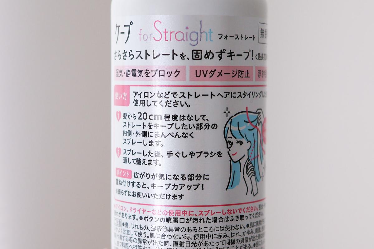 あとは、髪から20cm程度はなして、ストレートキープしたい部分の内側・外側にまんべんなくスプレーし、手櫛やブラシで整えるだけ。
