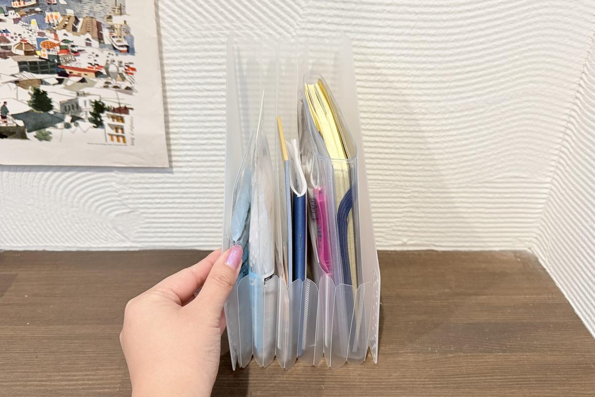 ただ、中身が増えると少しラフな見た目になる点と、重くて長いものを入れるとファイルごと倒れてしまいやすくなる点には少し注意が必要です。