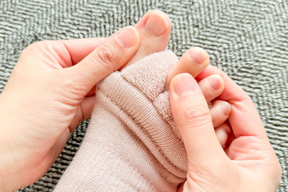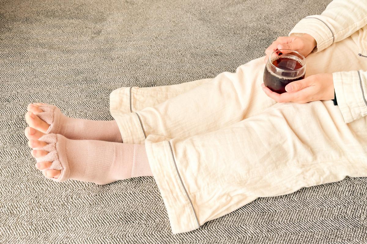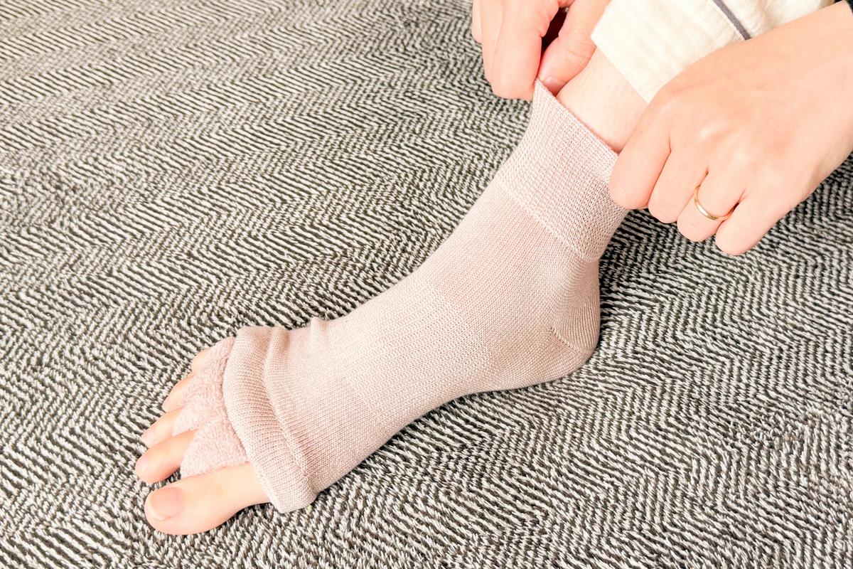 足の指の間には「足指クッション」があるので、履くだけで指同士の間隔が自然と広がって気持ちいいんです。