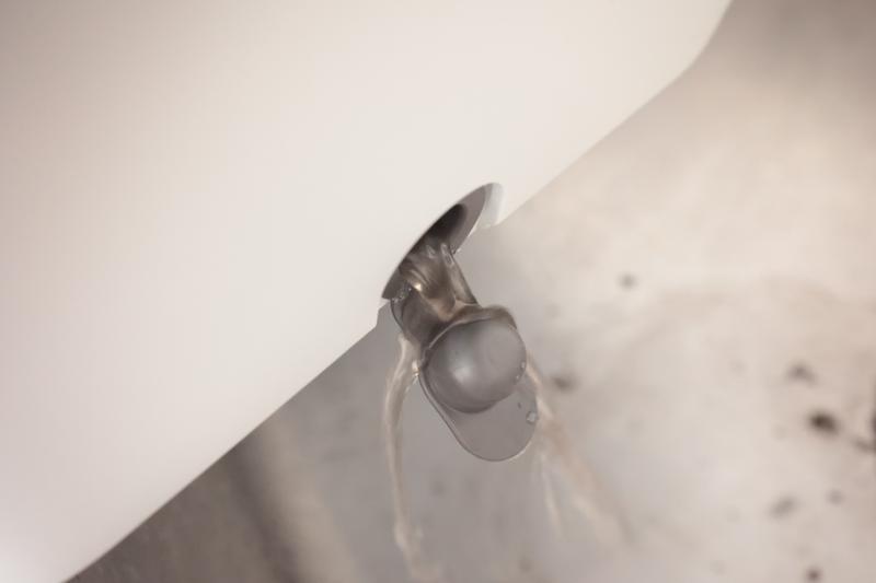 汚水タンクにたまった土混じりの水は、バケツ側面の下部にある排水口のキャップを外すことで、排水できます。その後のメンテは、透明カバーと洗浄タンクを取り外し、内部に残った汚水や土を洗い流せば完了。