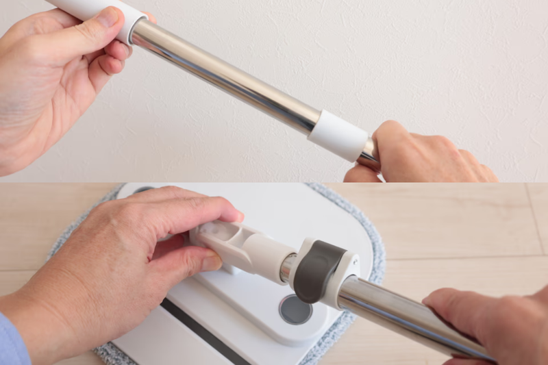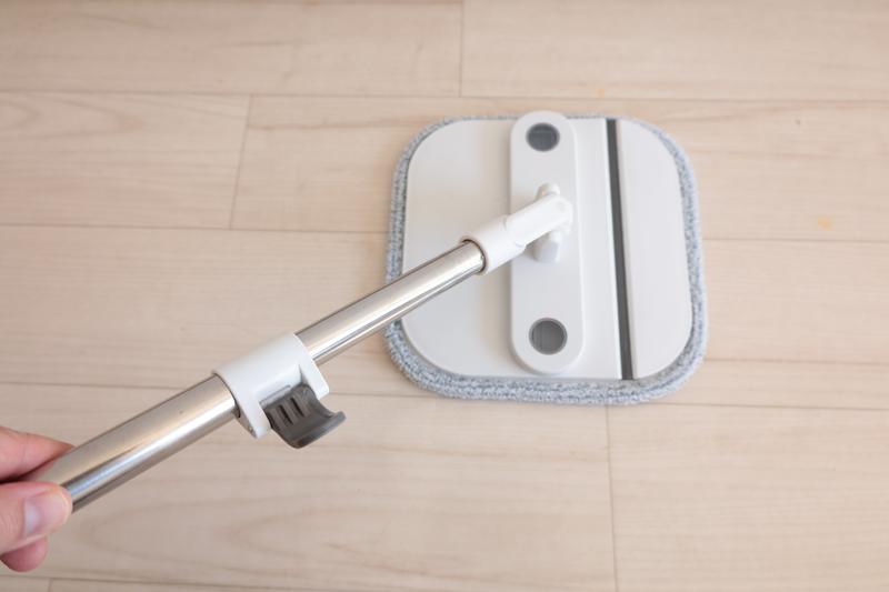 モップは4パーツに分解されているので、この組み立てから始めます。柄を継いでいき、先端をモップヘッドと連結します。